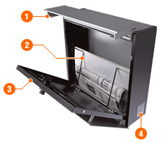通常は天蓋を上げずに、大きな郵便物の場合は先に天蓋を上げて、投入口(幅333mm×高さ38mm)から投入できます。